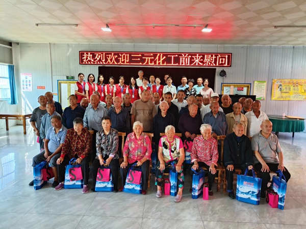 66位老人,66份礼物,15个人的爱心汇聚成了这次见面。三元化工营销团队提前一天就开始准备给老人们的节日礼品,亲手包装好了每一份手提袋。一大早所有员工着装整齐踏上了这次的敬老之旅。