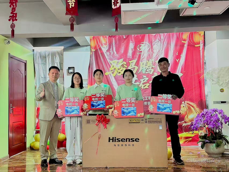 文艺表演间隙,激动人心的抽奖环节如期而至,成为年会的一大亮点,将现场气氛推向一个又一个高潮。随着幸运奖、三等奖、二等奖、一等奖的依次抽取,一位位幸运儿相继诞生,破壁机、电视机、智能手机等丰厚奖品逐一送出。这份份沉甸甸的奖品,不仅承载着公司对全体员工的关怀与厚爱,更传递着对大家新一年的美好祝福,让每一位员工都真切感受到了三元化工这个大家庭的温暖与温情,现场欢呼声、喝彩声不绝于耳,大家共同分享着这份喜悦与幸运。